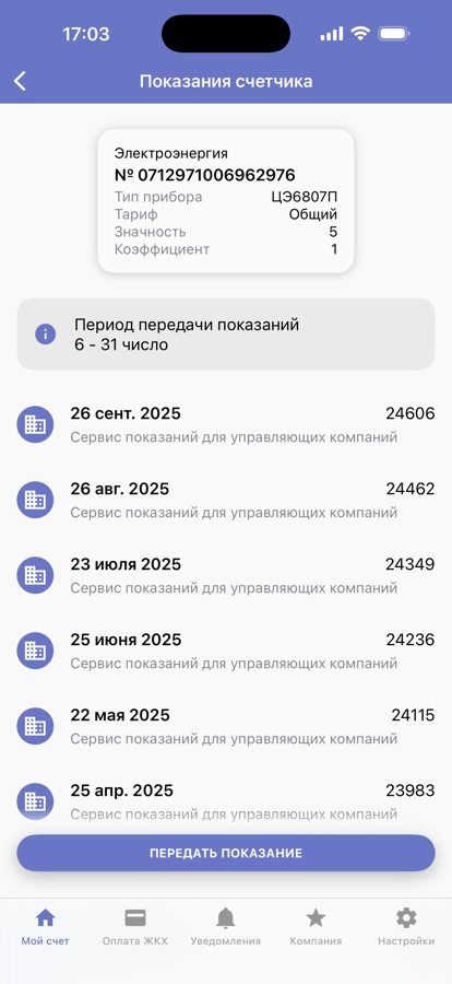 • Передать показания приборов учета и проконтролировать расход ресурсов;