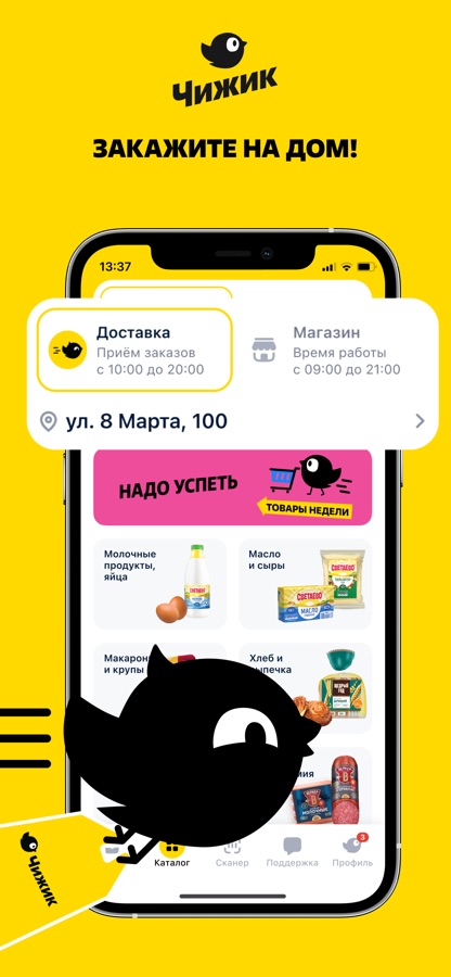 Скачайте приложение Чижик — продукты и доставка еды рядом с вами!