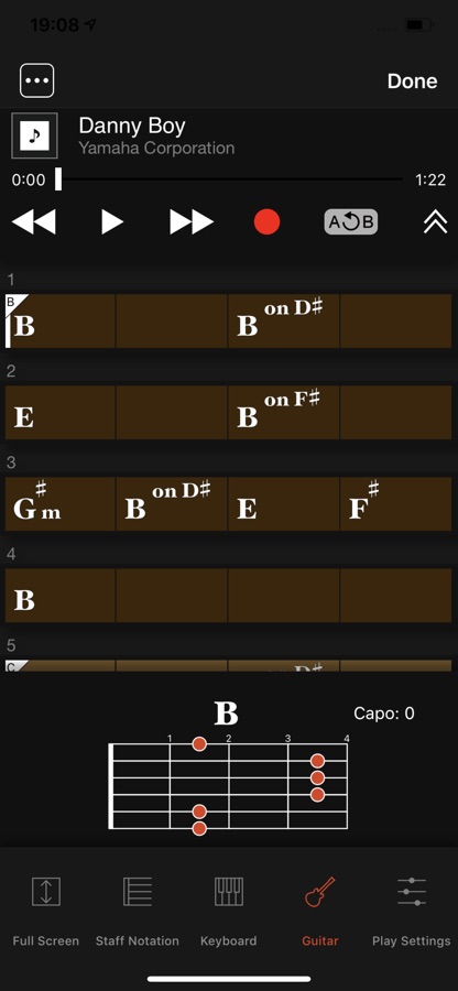 The Yamaha Chord Tracker app for iPhone/iPod touch/iPad helps you practice and perform songs by analyzing the audio songs stored in your iOS device and then displaying the chord symbols for you.