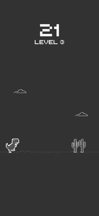 An 8-bit game comes for the people who love old-school styled graphics, with a dinosaur at an infinite desert. Your goal is to avoid cacti. Each time you jump onto a cactus, you get one point. Claim that you are the best at this game and show your skills to your friends by doing the highest score!