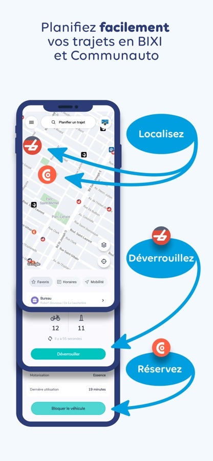-Réservez votre prochain BIXI, réservez une voiture Communauto ou Communauto Flex.