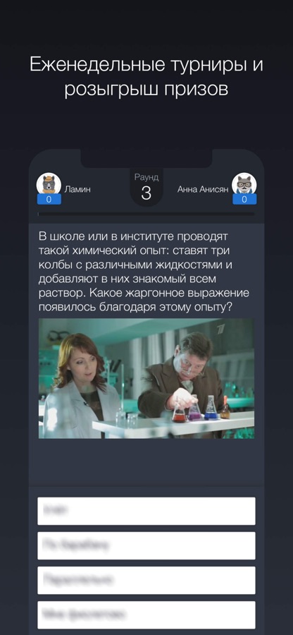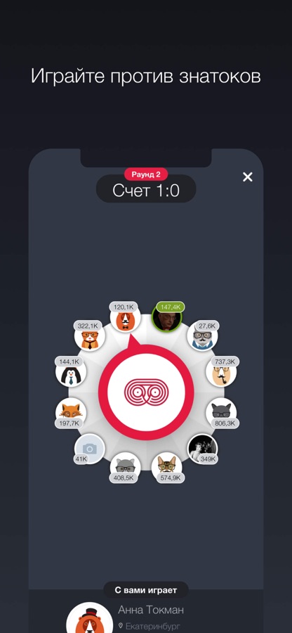 > Три вида игры: «Игрок против зрителей», «Турниры с друзьями» и «Вопросы знатокам».