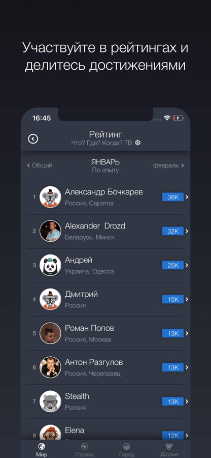 > Система рейтингов – соревнуйтесь с эрудитами со всего мира и рассказывайте об успехах друзьям!