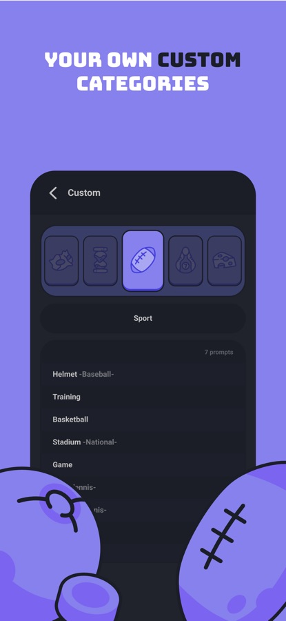 Погрузитесь в наше разнообразное предложение из 17 категорий, каждая из которых наполнена несколькими уникальными предложениями, чтобы разжечь ваше воображение. Кроме того, благодаря возможности создания пользовательских категорий, вы можете настроить свое творческое путешествие и опыт под свои предпочтения. Ни одна идея не останется неиспользованной!