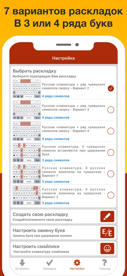 Быстрая и удобная Чувашская клавиатура с разными вариантами раскладок. Работает во всех приложениях и выглядит как системная клавиатура iOS.