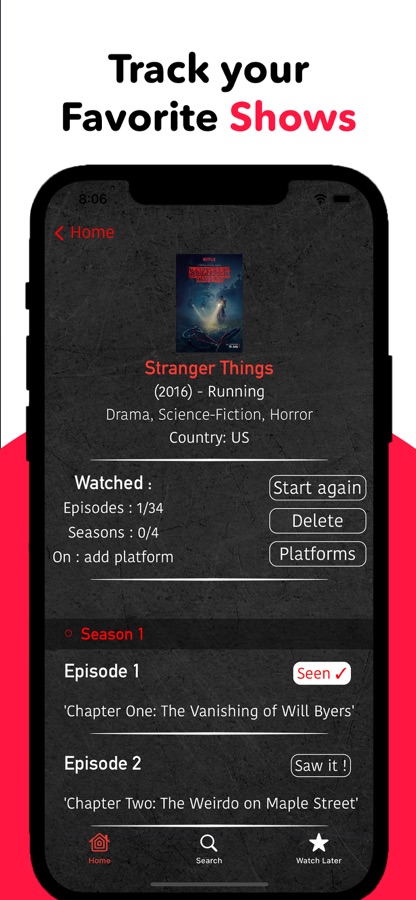 Cine Vision is the best way to manage and track your TV shows and discover seasons, information, casts and much more!