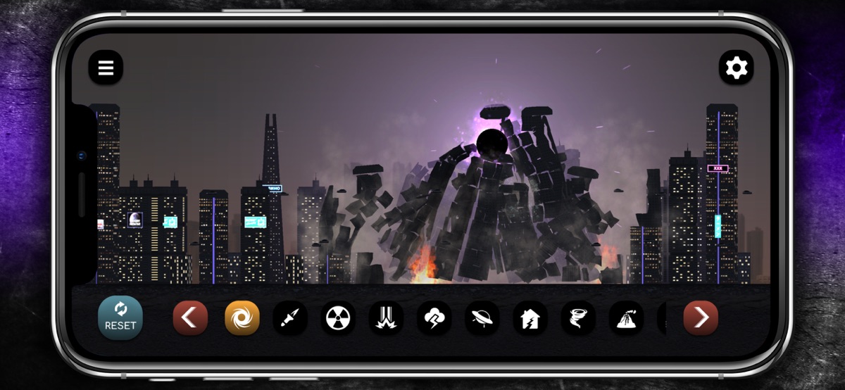 This game is a physics playground where you can smash a city with a nuclear bomb, missile, black hole, laser beam, or lightning.