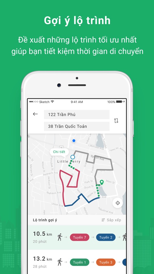 ► Ứng dụng tự động lấy vị trí hiện tại, người dùng nhập thông tin điểm đến. Ứng dụng sẽ hiển thị các lộ trình gợi ý, lộ trình xe bus.