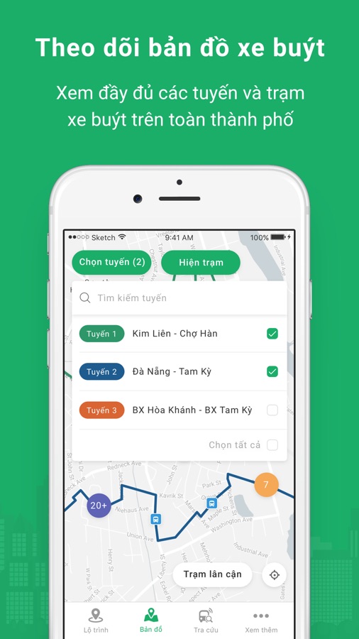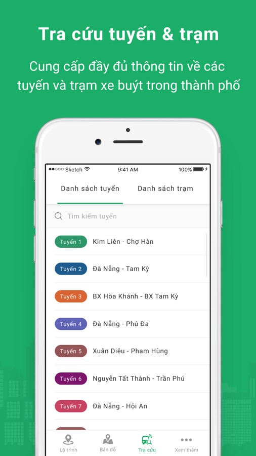 ► Hỗ trợ tra cứu lộ trình tất cả các tuyến xe bus: Các thông tin chi tiết về Giá Vé, Mã Tuyến, Bến Đi, Bến Đến, Tần Suất Tuyến và theo dõi vị trí các xe bus theo thời gian thực giúp người dùng nắm rõ thông tin chi tiết về các tuyến xe, thời điểm xe đến trạm, chủ động trong việc sắp xếp thời gian đón xe, giảm thời gian chờ đợi.