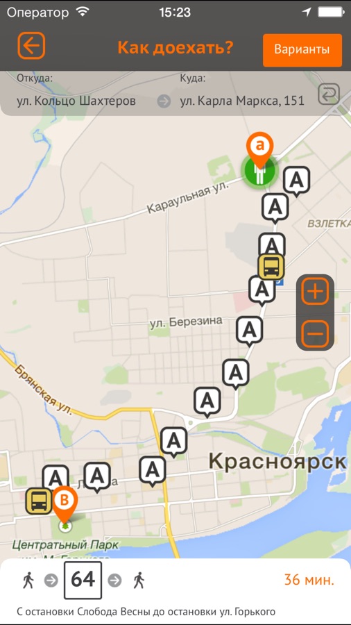 — разные виды представления данных (на карте, списком по автобусам, списком по остановкам)