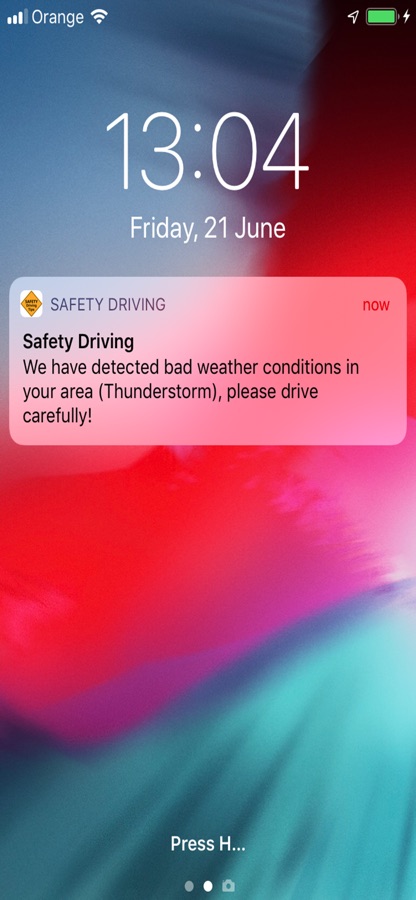 We add a weather notification service, when you are in an area with bad weather forecast will be warned to drive with caution.