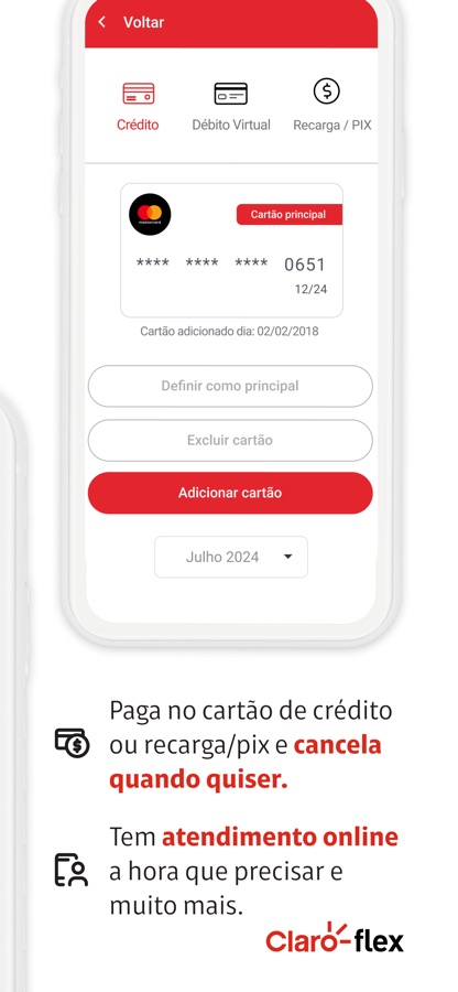 O Claro flex é um app disposto a evoluir junto com você! Dê seu feedback na aba Atendimento, dentro do app, e nos ajude a ter um Claro flex do seu jeito!
