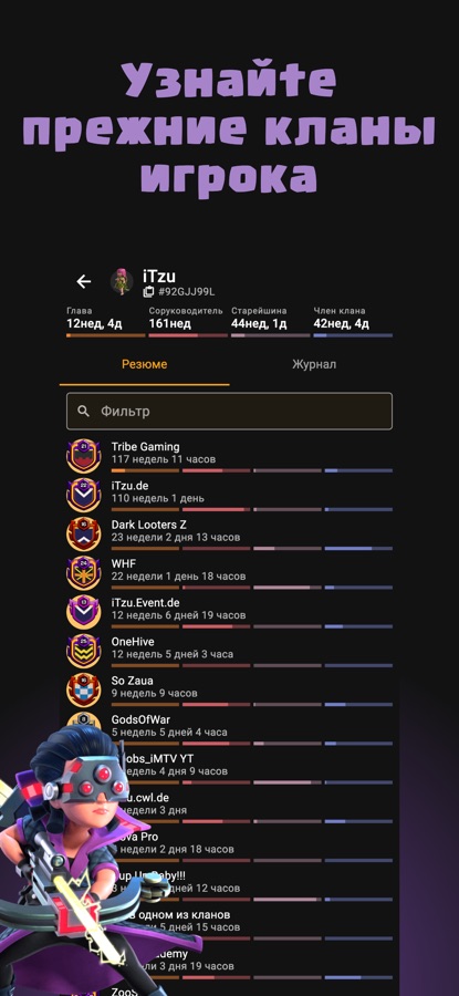 — Просмотр истории кланов игрока