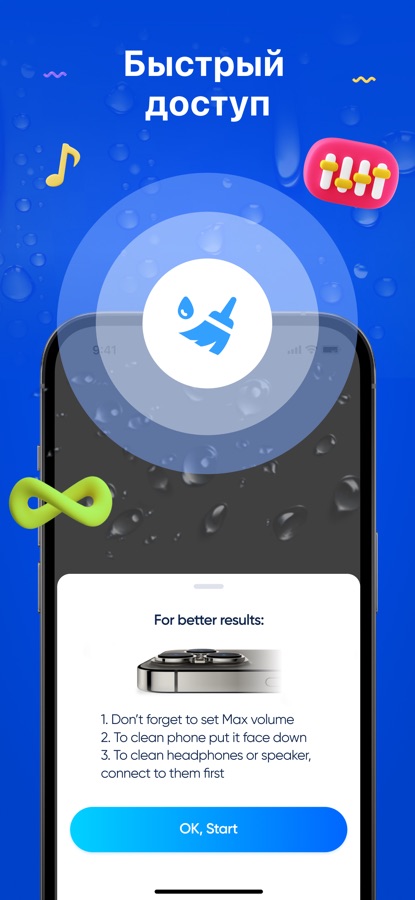 Отличным бонусом для пользователей станет функция автоматической очистки динамиков телефона от воды. Никаких сложных настроек делать не нужно. Очистка динамика происходит нажатием всего одной кнопки!