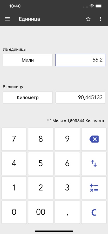 • Поддерживает длину, вес, ширину, объем, время, температуру, давление, скорость, КПД топлива, а также объемы данных.