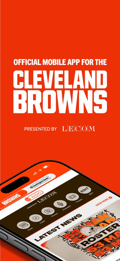 The official mobile app of the Cleveland Browns. Access the latest news, live scores, game schedules, and team updates—all in one place. Watch videos, listen to exclusive podcasts, and stream press conferences directly from the app. Manage your tickets, switch to Huntington Bank Field Mode for in-stadium info, and track live stats during every game. Your ultimate Browns experience, right at your fingertips.