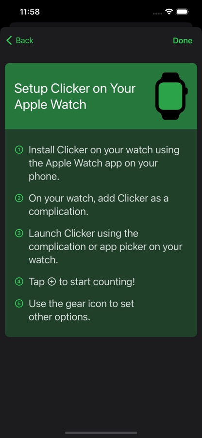 Includes an Apple Watch complication that lets you easily see and access the counter.