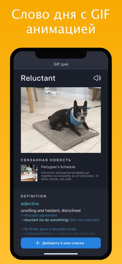 – Каждый день приложение присылает новое слово для обучения с забавным GIF дня.