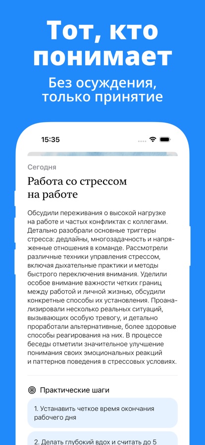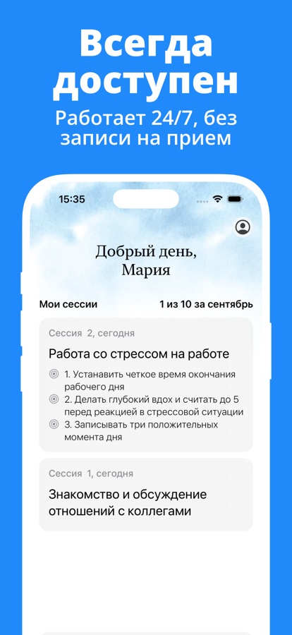 Где бы вы ни были и в какое бы время ни обратились — при стрессе, в сложный момент или просто для ежедневного «проверить себя» — Clo всегда на связи. Идеально подходит при стрессе на работе, панических атаках или для ежедневного самообслуживания.