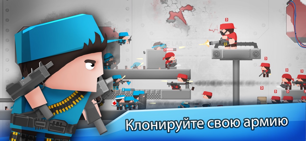 Смерть твоих солдат — часть увлекательной игры! Оригинальная механика клонирования, сочетающая в себе стратегию и беспрерывные атаки.