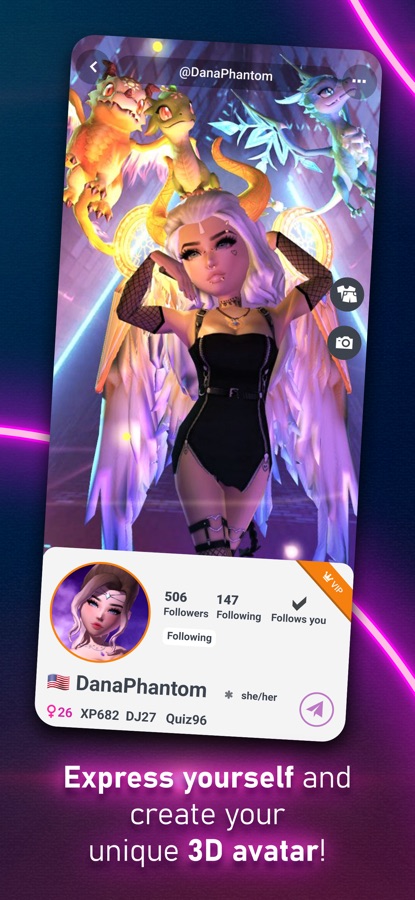 • Let your 3D avatar dance and show you who you are, who you like and who you belong to.