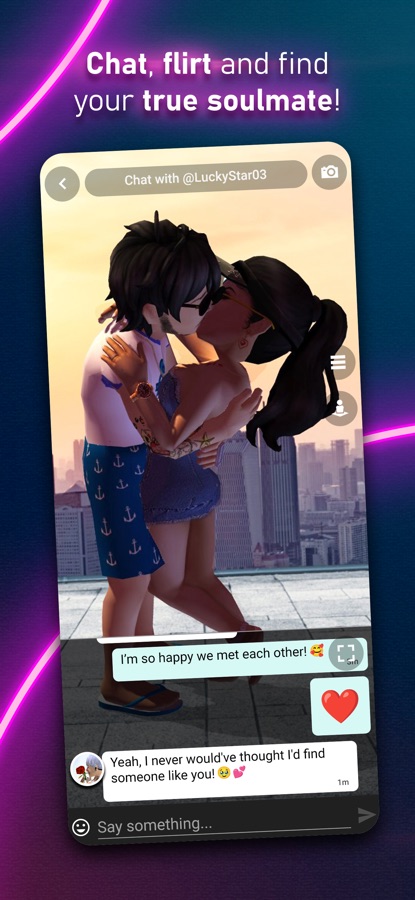 The built-in avatar chat helps you chat with your friends in a fun way: romantic dancing, hugging, kissing or just doing nonsense!