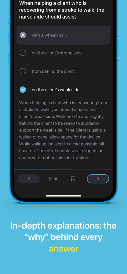 Don’t gamble with your career. CNA Genie is proven to skyrocket your chances of passing — by quizzing you on the same types of questions you’ll see on the official exam. It makes studying a breeze. Rather than try to memorize boring facts and numbers, get comfortable answering exam-like questions that range from easy to knuckle-cracking hard. If you can pass CNA Genie, you’ll be ready to pass the real thing.