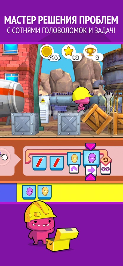 Наш интерфейс без слов позволяет играть кому угодно и где угодно и идеально подходит для начинающих программистов и читателей. Дети освоят основные концепции информатики, такие как распознавание образов, решение проблем, последовательность, алгоритмическое мышление, отладка, циклы и условные выражения.