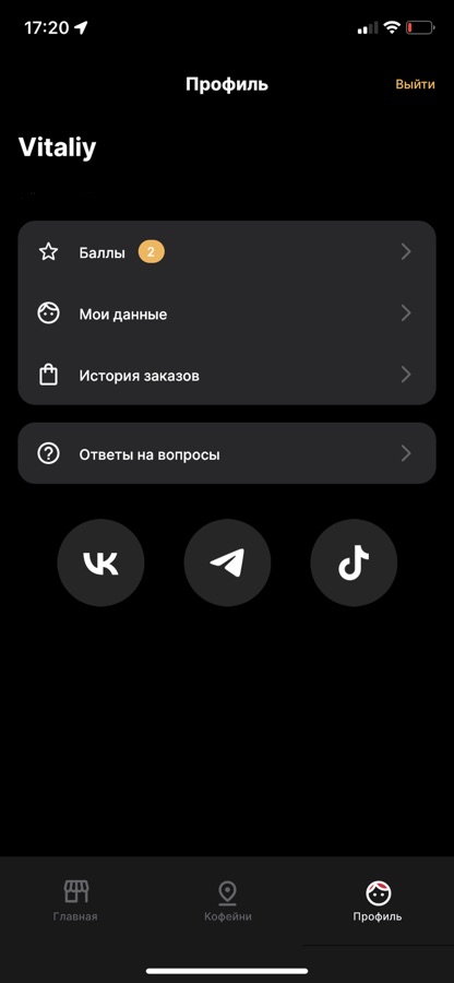 Приложение для постоянных гостей наших кофеен.