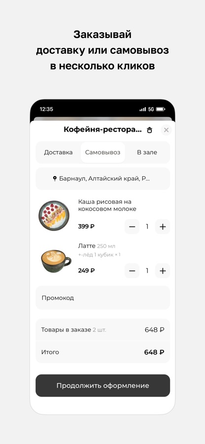 В приложении вы можете просматривать актуальное меню, выбирать блюда и оформлять заказ прямо со смартфона — быстро и удобно.
