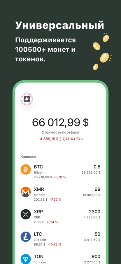 Coin Wallet — некастодиальный мультивалютный кошелек, поддерживающий более 20 криптовалют и тысячи токенов. Вы можете безопасно хранить, отправлять и получать биткоин, usdt, ethereum и другие криптовалюты через криптовалютный кошелек Coin Wallet.