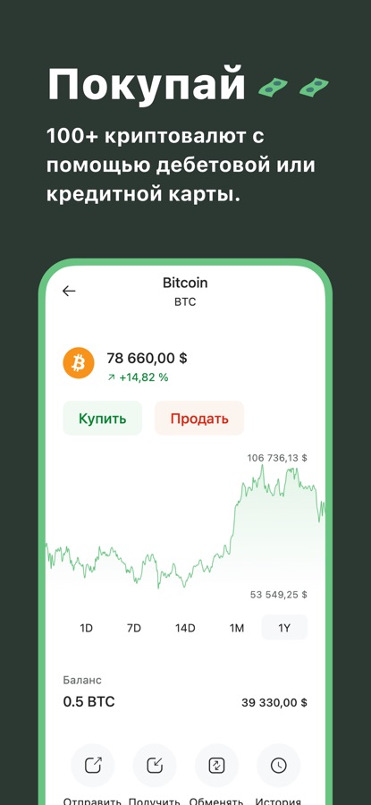 Основная функция кошелька — хранение криптовалюты. Вы можете купить криптовалюту через любую биржу Binance, OKX, Bybit, Kraken, Upbit, Gate, BingX, Bitget, Huobi и перевести в кошелек на хранение. В отличие от криптобиржи, криптовалюта всегда будет храниться у вас, и только у вас будет к ней доступ.