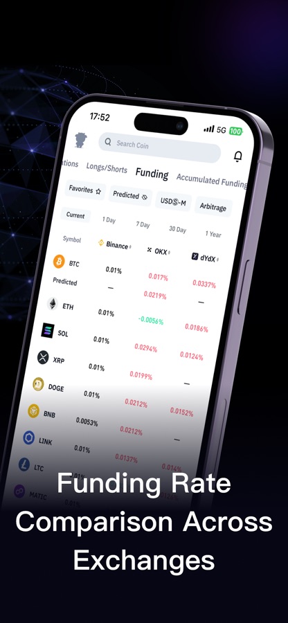 Coinglass App предоставляет следующие функции:
