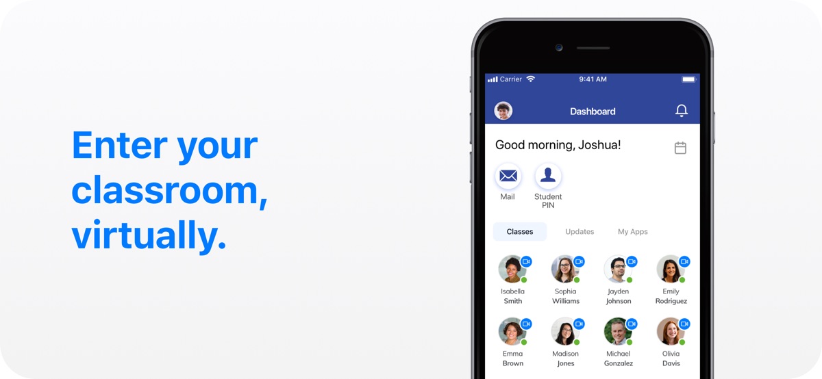 Colēgia hubs learning applications and a learning management system in one convenient location. Students can access virtual classrooms and engage in live instruction with teachers. They connect to the resources and tools they need to excel.