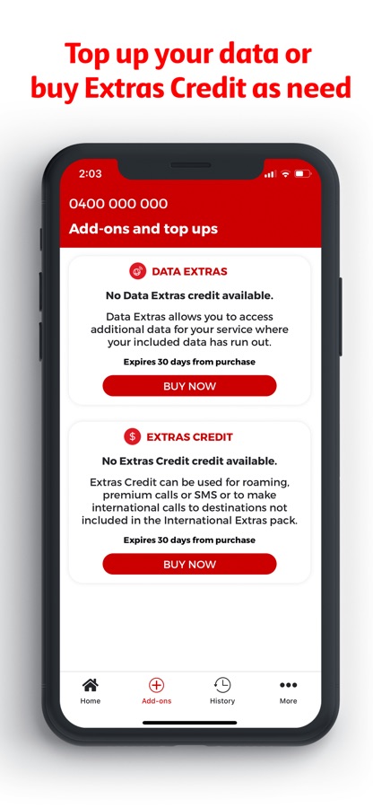 • Top up your data or buy Extras Credit as needed
