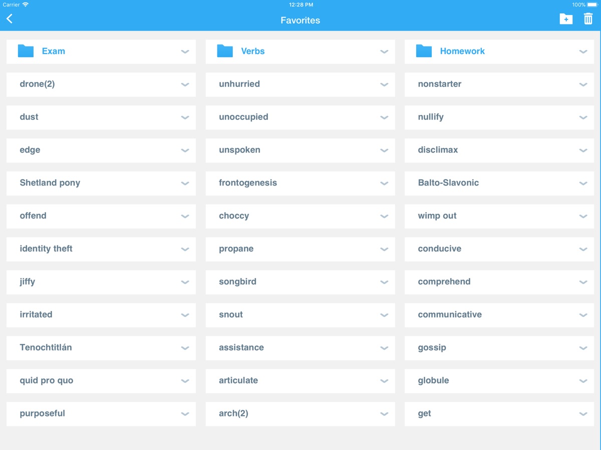 • ‘Favorites’ that allow you to create custom folders with lists of words.