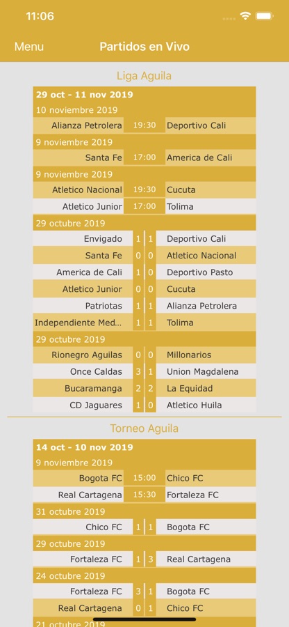 — Marcadores en vivo: sigue los partidos en vivo a través de los marcadores online y disfruta de estar actualizado con todo lo que sucede en el fútbol de Colombia. Servicio similar al ofrecido por otras aplicaciones como Roja Directa