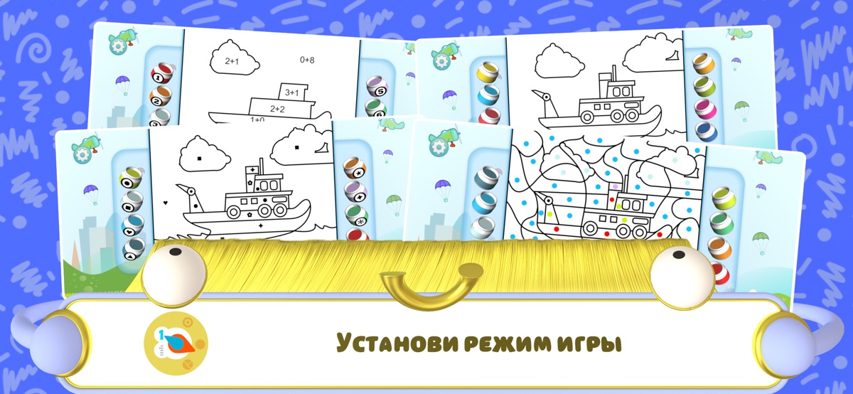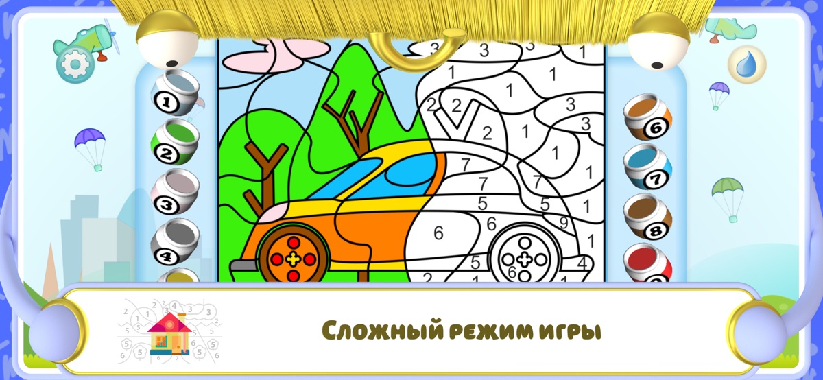 Раскрась по номерам — это интерактивная книжка раскраска для детей. Эта математическая игра научит распознавать числа и решать простейшие математические примеры. Кроме того, эта программа развивает память, внимание, воображение, логику.