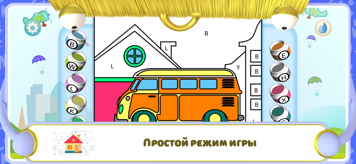 Раскраска будет интересна мальчикам и девочкам любого возраста. Для самых маленьких, детей детсадовского и дошкольного возраста, подойдет простой режим раскрашивания. В нем картинки простые и узнаваемые, их легко раскрашивать. Если выбрать неправильный тюбик, то появиться подсказка с правильным номером. Поэтому картинка всегда будет раскрашена правильно, а малыш быстро запомнит цифры. Вместо цифр можно выбрать раскрашивание по геометрическим фигурам и значкам. Ребенок легко отличит квадрат от круга, ромба, треугольника.