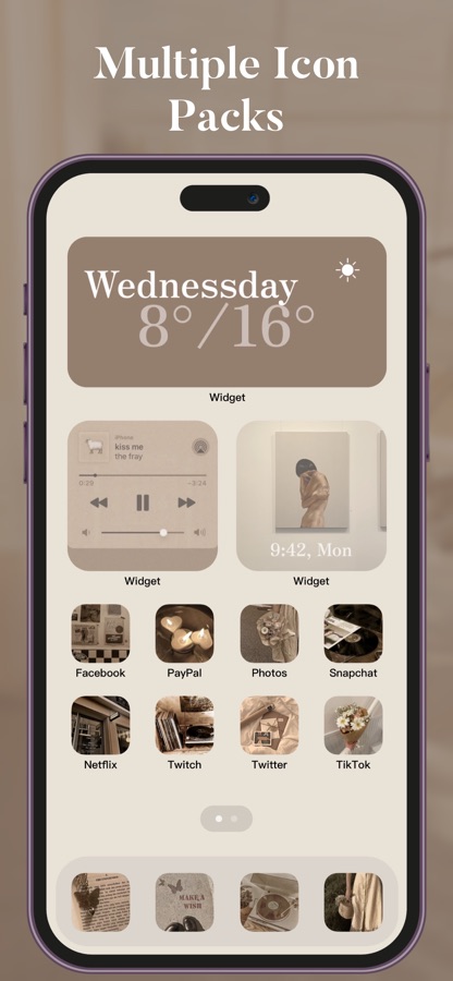 Сохраните свой iPhone стильным и аккуратным с помощью теплых, красивых, мультяшных, неоновых и модных тем. Вдохновляйтесь бесконечными темами, пробуйте все, что вам нравится, и устанавливайте их в качестве домашнего экрана несколькими касаниями.