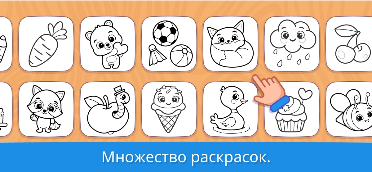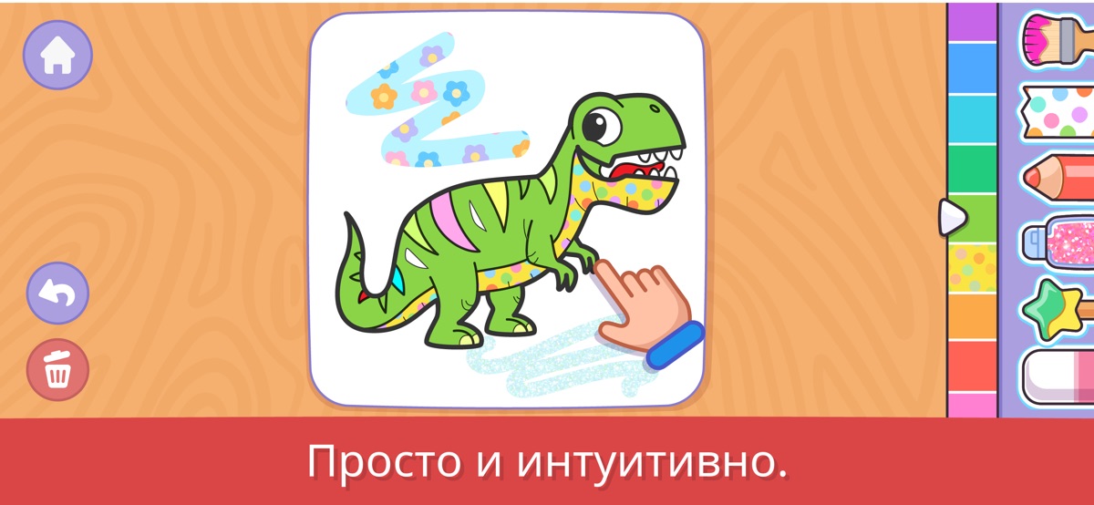 Это приложение для раскрашивания создано специально для детей от 1 года до дошкольников, и имеет продуманный интерфейс, обеспечивающий интуитивно понятный и увлекательный опыт для наших самых маленьких пользователей.