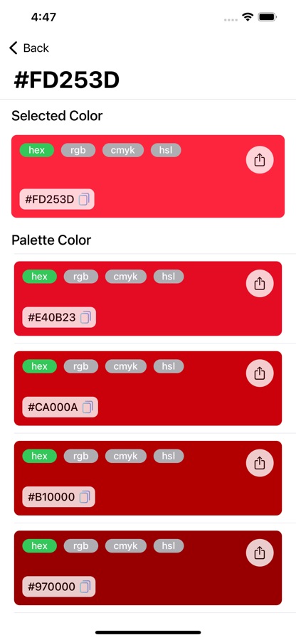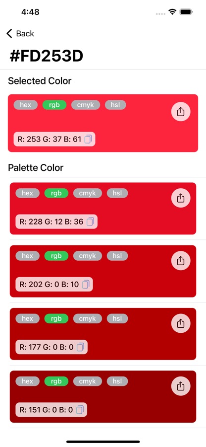 — Get the colour palette for the selected colour