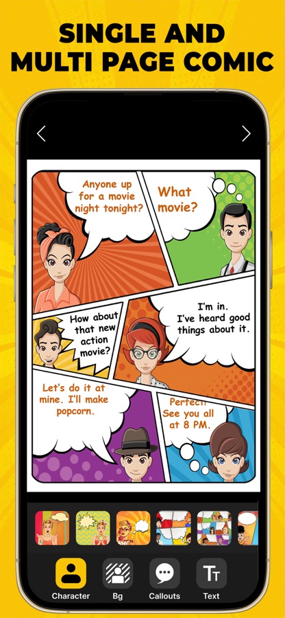 Приложение Cartoon Comic Story Maker позволяет создавать удивительные комиксы, раскадровки, комиксы и мемы. Создавать комиксы чрезвычайно просто, все, что вам нужно сделать, это выбрать мультипликационного персонажа, комическое фоновое изображение и речевые пузыри, чтобы написать свою историю. Выбирайте героев мультфильмов из лучшей коллекции профессиональных карикатуристов и изображений, созданных художниками, и создавайте свои собственные комические истории, добавляя только текст. Поделитесь своими комиксами в Facebook, Twitter и других социальных сетях, чтобы ваши друзья смеялись и демонстрировали свое воображение.