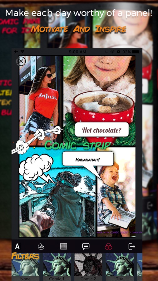 Create stunning Comic Book Panels easily, for those memories that you just can’t wait to share.