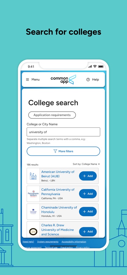Common App for mobile provides you with the same secure, streamlined application experience you’ve come to expect from Common App online, all from the convenience of your mobile device. The app seamlessly integrates with the first-year desktop experience — allowing you to apply to more than 1000 colleges, research financial aid, and get advice from counselors.