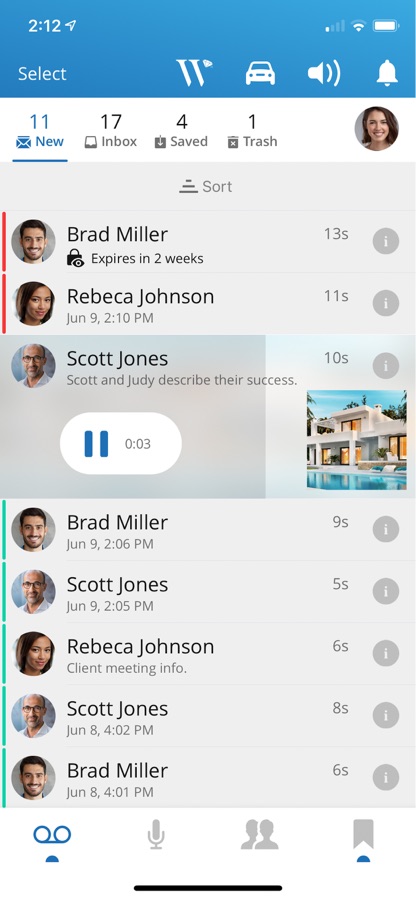 The CommuniKate Mobile app for WWG allows CommuniKate users to access their voice messages. Notifications alert about new messages which users can play back, reply, or forward.