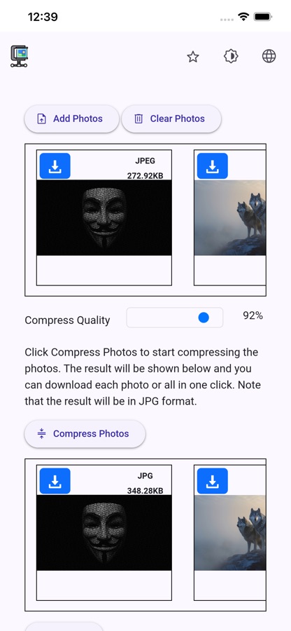 JPEG Compression apps are designed with ease of use as a top priority. They usually have a simple and intuitive interface, allowing users to quickly compress images without having to navigate through complex settings. Drag-and-drop functionality, clear options for selecting compression levels, and visible indicators of file size before and after compression improve the user experience, making the app easy to use for beginners and professionals alike.