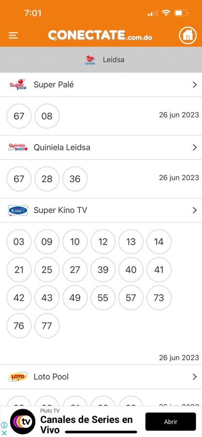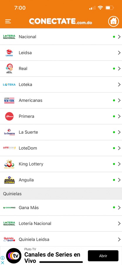 Conectate Loterías es una app de Conectate.com.do, que ofrece resultados y estadísticias de todas las loterías de la República Dominicana: Lotería Nacional, La Primera, Leidsa, Loto Real, Loteka, Lotedom y New York, al igual que algunas loterías de Estados Unidos y Anguila que también son populares (Powerball y Mega Millions).