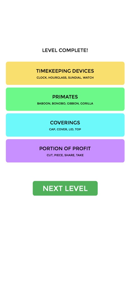 Complete the 4 x 4 word grid by connecting groups of four words which share a connection / common theme. The game starts simple but gets progressively more difficult — easy to play but tricky to master. The game is a mixture of crossword, word search and logic association and perfect for players of all ages — children, teens and adults, families and friends. Improve your logical thinking and spelling skills.