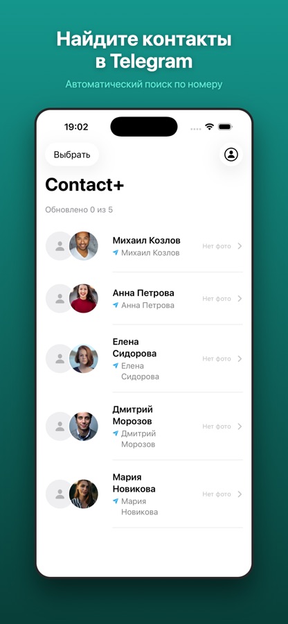 Обновите фотографии контактов на iPhone из Telegram — автоматическое сопоставление, сравнение фото и пакетная синхронизация одним нажатием.